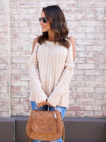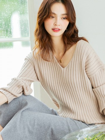 Beige V-neck Ribbed Style Sweater