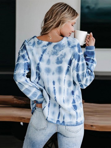 Blue Round Neck Tie-dye Knit Top