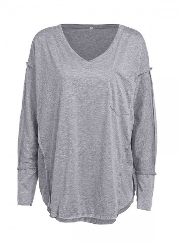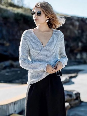 Blue V Neck Loose Sweater