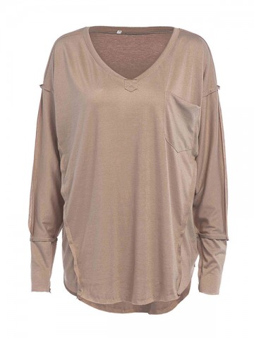 Khaki V Neck Loose Sweater