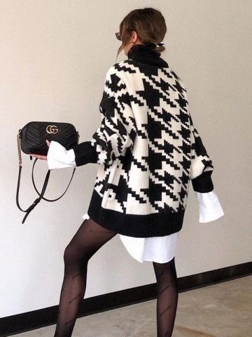 Black Oversize Houndstooth Knit Sweaters