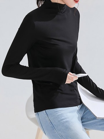 Black CHIC Stand Collar Long Sleeves Knit Sweaters