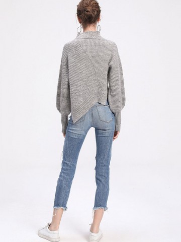 White CHIC Stand Collar Long Sleeves Knit Sweaters