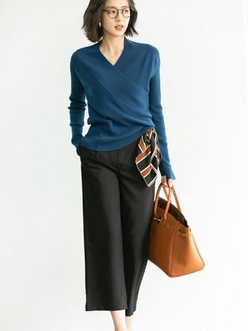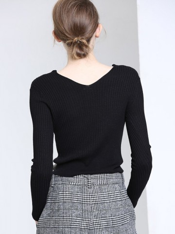 Black Long Sleeves V-neck Bodycon Knit Sweaters