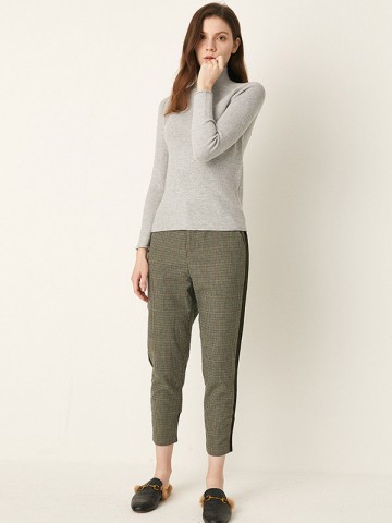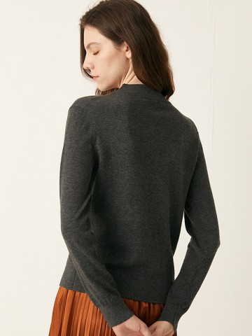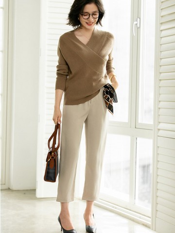 Khaki CHIC Stand Collar Long Sleeves Knit Sweaters