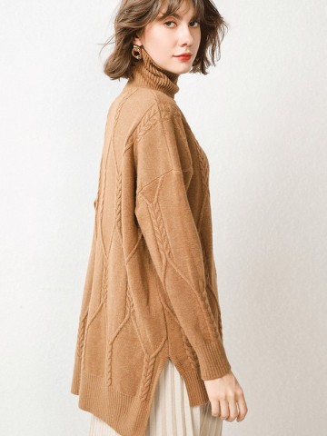Camel Split Elements Oversize Turtleneck Knit Sweaters