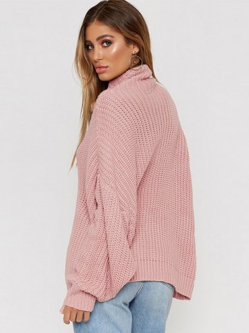 Pink High Collar Long Sleeve Fashionable Knitted Sweater
