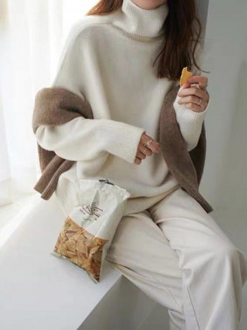 Apricot Turtleneck Oversize Heavy Knitted Sweaters