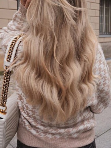 Camel Roll Neck Thread Texture Knit Sweaters