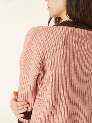 Pink Roll Neck Split Details Knit Sweaters