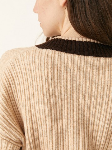 Beige Funnel Neck Base Fine Knitted Sweaters