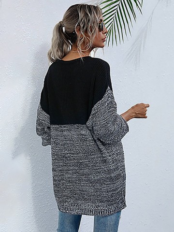 Black V-neck Loose Back Air Eye Bandage Knitted Sweater