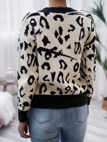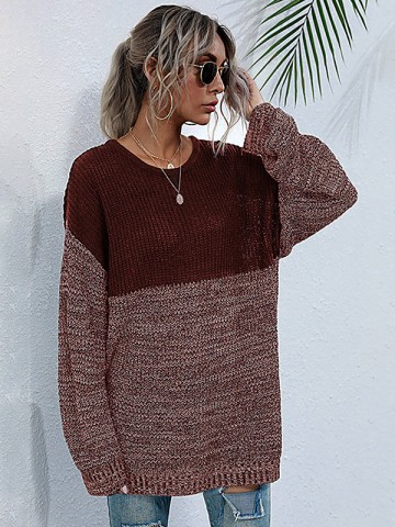 White Crew Neck Fashion Color Block Design Knitted Sweater