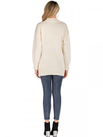 White Half High Collar Solid Color Casual Knitted Sweater