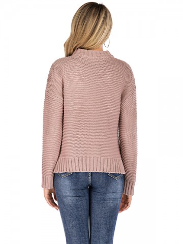 Pink High Collar Long Sleeve Fashionable Knitted Sweater
