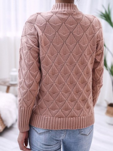 Pink Half High Neck Diamond Knitted Sweater