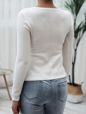 White Fashion Round Neck Waistband Knitted Sweater