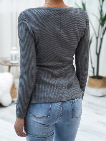 Grey Slim Lace Up Crew Neck Sweater