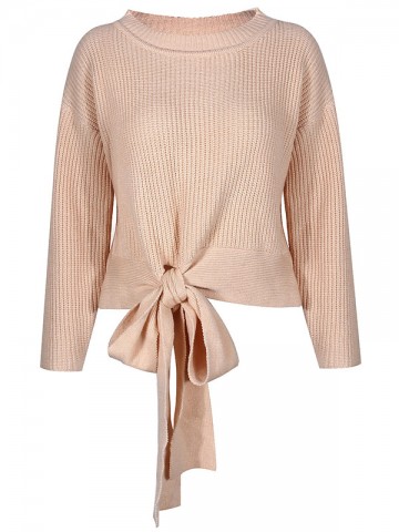 Khaki Oversize Long Sleeve Knotting Casual Loose Knitted Sweater