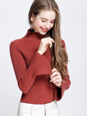 Yellow Half High Neck Flared Sleeve Warm Sweater
