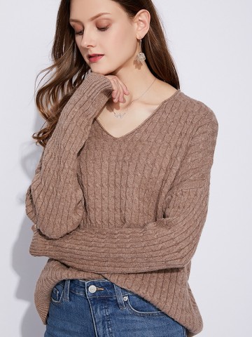 Pink Apricot Loose Half Sleeve Wool V-Neck Sweater