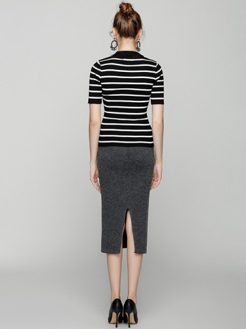 Black And White Stripe Half Sleeve Thin Knitted Sweater