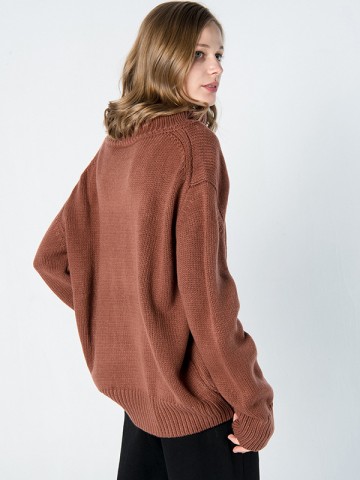 Dark Brown High Neck Soft Long Sleeve Thick Knit Sweater