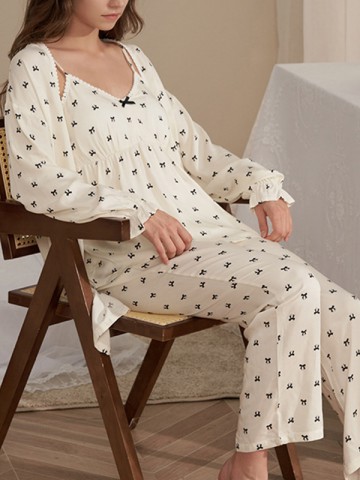 Apricot Polka Dots Print Long Sleeved Pajama Set