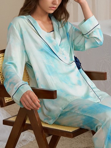 Green Classic Trimmed Satin Long Sleeves Pajama Set