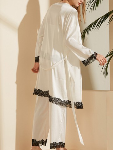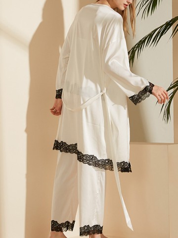 Champagne Satin Nightdress and Robe Set with Lace Trim