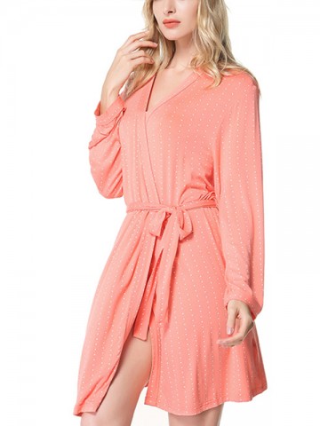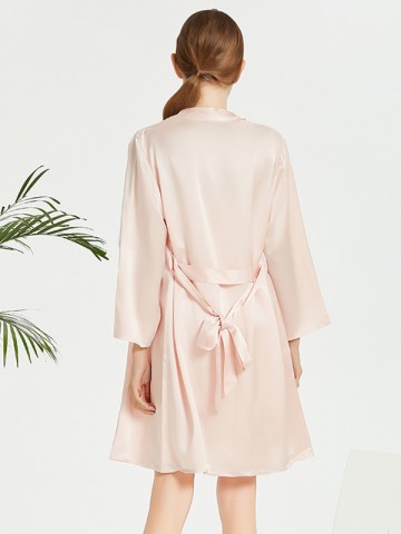 Apricot Shawl Collar Trimmed Satin Robe with Tie Wasit