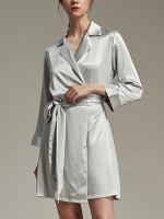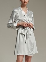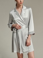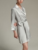 Silver Notched Collar Satin Robe