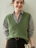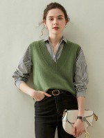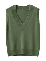 V-neck Heavy Knit Vest in Green