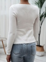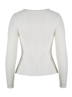 White Crew Neck Long Sleeve Lotus Leaf Hem Sweater