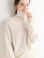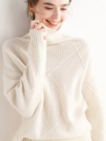 Process: Long sleeves, Turtleneck, Loose fit, Diamond lattice pattern