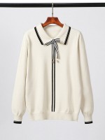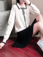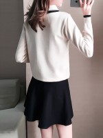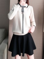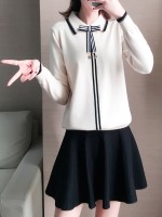 White Knit Long Sleeve Polo Top with Skater Skirt