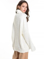 White Oversize Funnel Neck Knit Sweaters