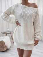 White Oversize Long-sleeved Casual Loose Knit Sweater