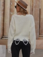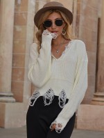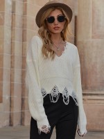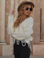 White Oversize V-neck Tassel Knit Cropped Tops