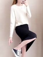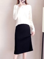 White Round Neck Sweater & Ribbed Pencil Skirt