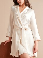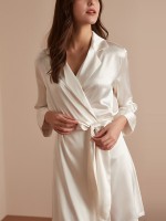 White Satin Tie Waist Robe