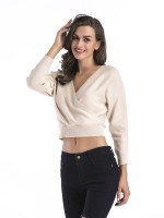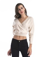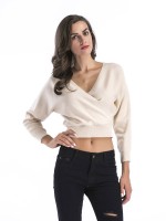 White Short Loose Bat Sleeve Plunge V-Neck Sweater