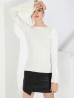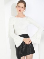 White Thick Flared Sleeve Scoop Neck Sweater with Stud Beads