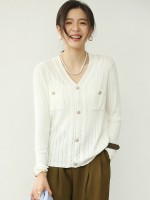 White V-neck Knit Top with Buttons