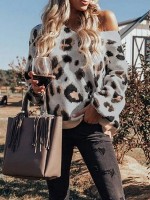 White V-neck Leopard Pattern Oversize Knit Sweaters