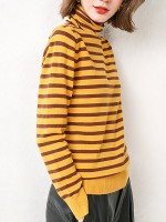 Yellow Casual Knit Sweaters With Stripes
