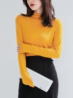 Yellow CHIC Stand Collar Long Sleeves Knit Sweaters