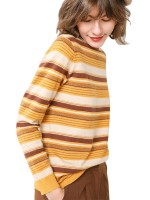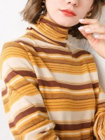 Yellow Funnel Neck Stripes Design Knit Sweaters