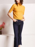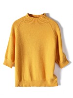 Yellow Half-sleeved Turtleneck Knit Sweater