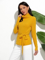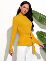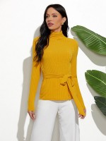 Yellow High Neck Long Sleeve Slim Sweater